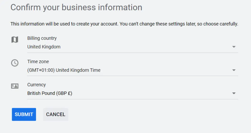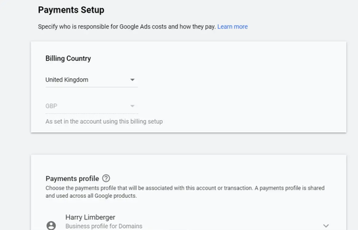 Without registered billing details, your Google Ads won’t be shown across the Google network. It is therefore vital that accurate billing details are provided.