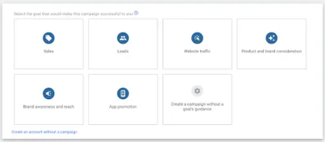 Once you sign into your Google account in the previous step, whilst at ads.google.com, you will be prompted to choose your advertising goal. In this blog, to provide the most detailed setup, select “Switch to Expert Mode” at the bottom of the page. You will be presented with the following page.