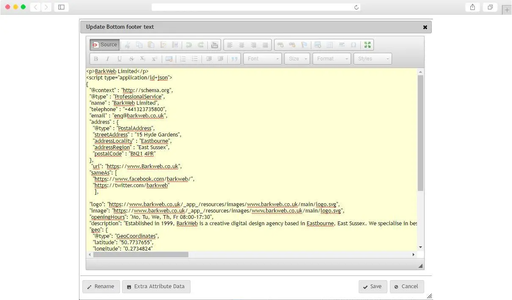 Again, I choose to post JSON-LD scripts into the CSS footer of the page using our custom designed CMS from BarkWeb, as followed;