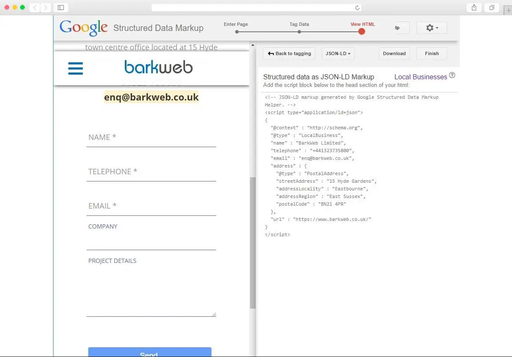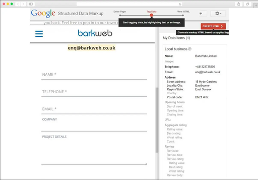 Top tip: If you don’t put a country code in, your phone number will not be indexed by major search engines. So if like us you have a number on your page showing the UK only area code, you can add your telephone number by clicking ‘Add missing tags’, and type the number in manually under the ‘Telephone’ sub-category.