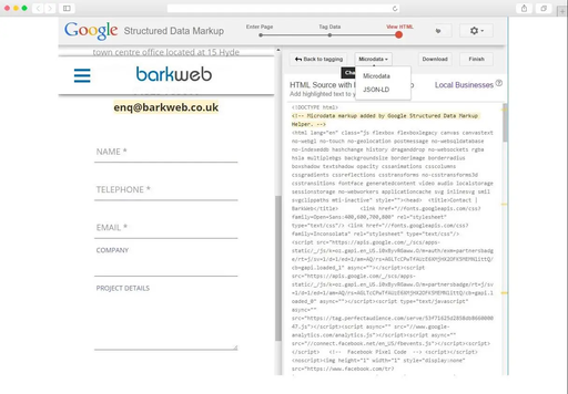 9. Now, you should see the suggested HTML. Microdata is the preferred format by Google, but today we’re going to try some JSON-LD. Google representatives have stated time and time again that wrapping your text with schema coding is the best way to get your site understood, however, JSON-LD is a widely accepted format that adds rich snippets to your page without having to directly access the surrounding content.