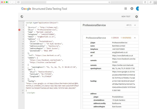 So, for BarkWeb, we are going to change the ‘LocalBusiness’ to ‘ProfessionalService’.