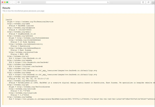 Finally, you want to use the Yandex microdata testing tool to ensure it is being picked up and categorized correctly. Here is an example of the script we just created in the Yandex testing tool;
