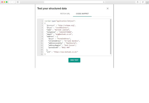 11. Paste your new script into Google’s structured data testing tool here, under ‘CODE SNIPPET’.